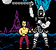 「瓶を振り回して攻撃」を一定の間隔で繰り返してきます。振り回している間に一、二歩前進して、すぐにしゃがんで攻撃をかわします。